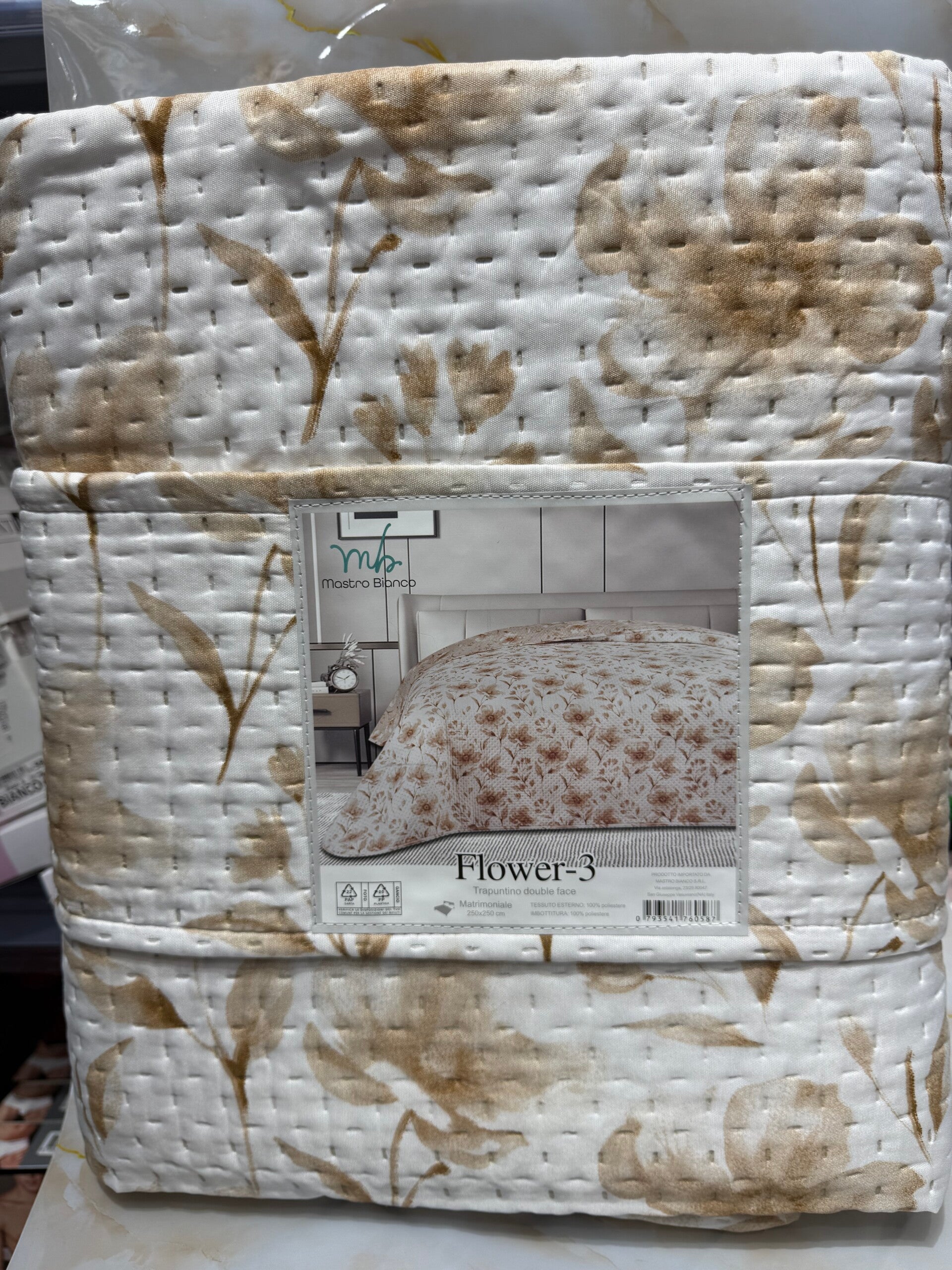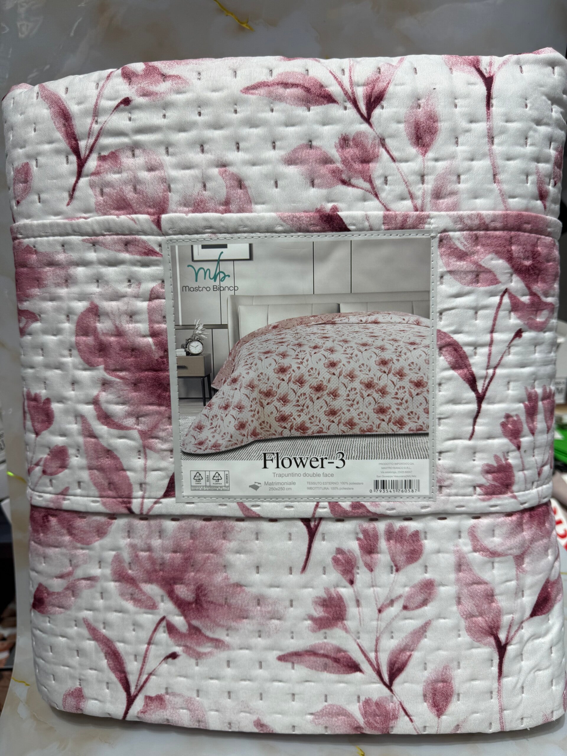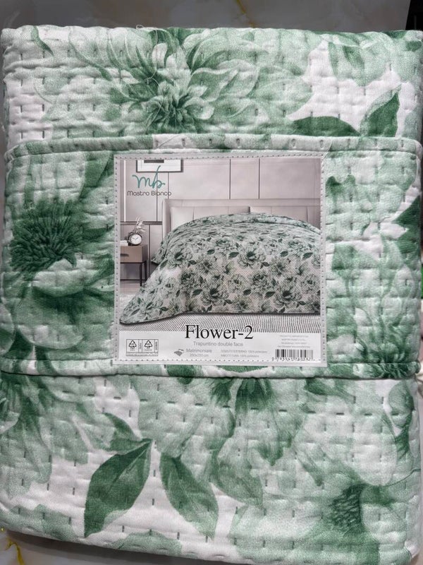 Copriletto matrimoniale con motivi floreali e con aggiunta di una fascia comoda per mantenerlo piegato anche nei vostri armadi